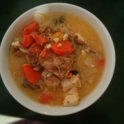 猪肉、白萝卜、胡萝卜、料酒、蚝油、葱、姜。