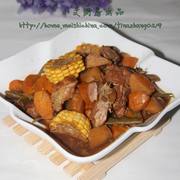 排骨、豆角、土豆、玉米、胡萝卜、八角、大葱、大蒜、姜、生抽、豆瓣酱、油、盐。