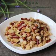 杏鲍菇、花生米、大葱、醋、糖、盐、料酒、干辣椒、酱油、淀粉。