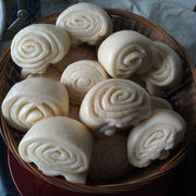 中筋面粉、熟南瓜、牛奶、酵母粉、中筋面粉、牛奶、酵母粉、白糖。