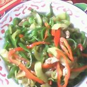 菜瓜、青红辣椒、猪肉、十三香、盐、白糖。