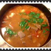 西红柿、牛肉、嫩豆腐、鸡汤、葱、姜、蒜、香菜。