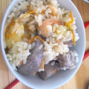 马铃薯、胡萝卜、瘦肉、鲜虾、大米、芋头、猪油、盐、白胡椒粉。