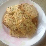 低筋面粉、黄油、食用油、鸡蛋、葱花、火腿粒、芝士、糖粉、盐、鸡精。