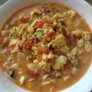 鸡蛋、西红柿、面条、咸盐、鸡精、葱。