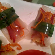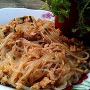春卷皮、肉末、粉丝、胡萝卜、黑木耳。