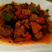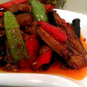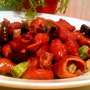 鸡肉、青辣椒、红辣椒、麻辣酱。