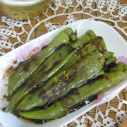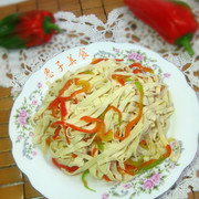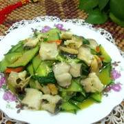 虾爬子肉、角瓜、尖椒、盐、味精、米醋、蒜末、食用油。