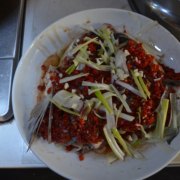 鲅鱼、料酒、盐、姜片、韩国辣酱、淀粉。