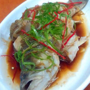 鲈鱼、小葱、姜、红尖椒、油、盐、糖、生抽、生粉。