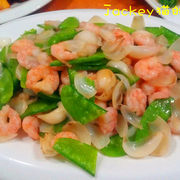 荷兰豆、鲜虾仁、百合、油、糖、盐。