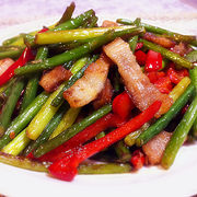 蒜苔、五花肉、红椒、大蒜、胡椒粉、盐、味精。