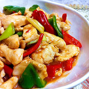鸡胸脯肉、青椒、红椒、葱白、番茄沙司、蚝油、淀粉、小苏打、胡椒粉、味精、盐。