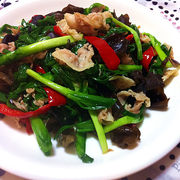 木耳、韭菜、猪肉片、红椒、胡椒粉。