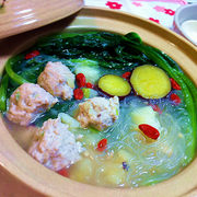 小白菜、猪肉馅、鸡架、地瓜、土豆、鸡蛋、粉丝、枸杞、淀粉、花椒、八角、香叶、肉桂、树皮、盐、味精。