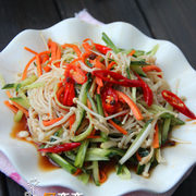 金针菇、黄瓜、胡萝卜、干辣椒、植物油、葱、醋、生抽、花椒、盐、糖、香油。