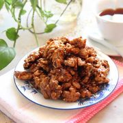 排骨、淀粉、老抽、料酒、盐、胡椒粉、花椒粉、蒜粉、植物油、白糖、麦芽糖、香油、芝麻、水。