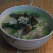剩饭、青菜、皮蛋、瘦肉、盐、味精、油。