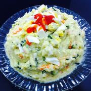 土豆、黄瓜、胡萝卜、煮熟鸡蛋、食盐、白胡椒、沙拉酱。