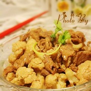 椰花菜、里脊肉、油、生粉、鸡粉、胡椒粉、砂糖、生抽、清水。