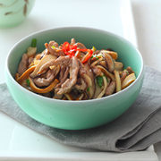 香菇、牛柳、芹菜、生抽酱油、蚝油、黄酒、黑胡椒粉。