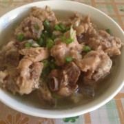 排骨、花生油、盐、鸡精、生抽、水淀粉、小葱。