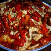 精瘦肉、油菜、葱末、姜末、蒜末、郫县豆瓣酱、花椒面、辣椒面、干辣椒段、淀粉、鸡蛋、老汤、鸡精、色拉油。