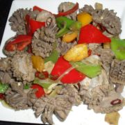 鸡胗、尖椒、红椒、黄椒、小干辣椒圈、葱姜蒜、花椒面、料酒、生抽、色拉油、八角、味精、盐。