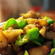 辣子、土豆、茄子、葱丝、姜片、蒜瓣、豆瓣酱、老抽、蚝油、盐、水淀粉。