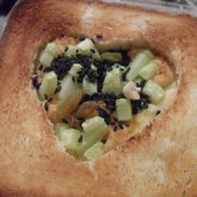 白吐司、芝士、肉松、去皮黄瓜、芝麻。