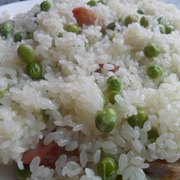 糯米、广式香肠、香肠、豌豆、盐、油、花椒粒。