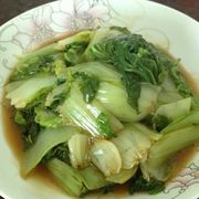小白菜、蒜、葱、油、生抽、醋、糖、盐、鸡精、番茄酱、淀粉。