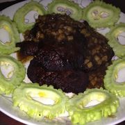 牛腩、洋葱、土豆、苦瓜、白胡椒粉、黑胡椒粉、油、盐、番茄酱、生抽。