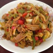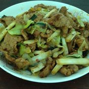 猪里脊肉、莲白、青椒、红椒、葱、姜、油、盐、味精、鸡精、生抽、辣椒酱、豆瓣酱。