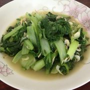小白菜、虾米、葱、蒜、盐、味精、生抽。
