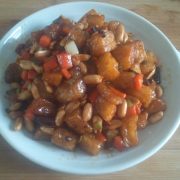年糕、胡萝卜、花生、生抽、糖、鸡精、花椒、醋、辣椒、葱、盐、黄酒。