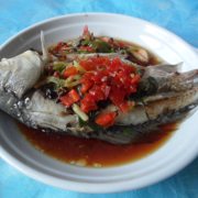 活鲫鱼、生姜、香葱、剁辣椒、盐、花椒、蒸鱼豉油、花生油。