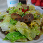 圆白菜、风干肠、姜、干红辣椒、花椒粒、海天蚝油、花生油。