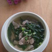 猪瘦肉、猪粉肠、猪肝、枸杞叶、生姜、油、盐、胡椒粉、鸡精。