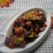 鸡蛋、红椒、蒜、洋葱、干豆豉、油、盐、生抽。
