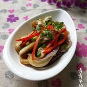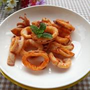 鱿鱼、洋葱、蒜、叉烧酱、韩国辣酱、生抽、料酒、黑胡椒粉。