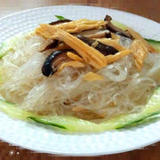 粉丝、香菇、腐竹、青瓜、盐、鸡精、黑椒粉。