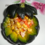 火腿、甜玉米粒、胡萝卜、小南瓜、油、盐。