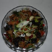 肥肠、蒜苗、香菇、莴笋头、青椒、红椒、八角、料酒、草果、鸡粉、生抽、老抽、剁辣椒、胡椒粉、干辣椒粉、盐、香油、桂皮、花椒、橘皮、豆蔻。