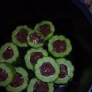 苦瓜、肉馅、干香菇、蛋清、蒜瓣、湿淀粉、五香粉、盐、淀粉。