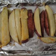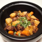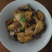茄子、鸡胸肉、生粉、葱、姜、干辣椒末、蚝油、麦芽糖。