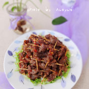 精瘦肉、油、盐、黑胡椒粉、蜂蜜、鱼露、老抽、生抽、料酒、白芝麻。