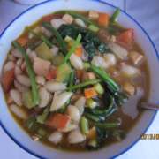 麻什、豆腐、蒜薹、菠菜、西红柿、黄瓜、胡萝卜、葱末、蒜、姜末、盐、生姜粉、老抽、鸡粉、花椒粉、生抽、蚝油。