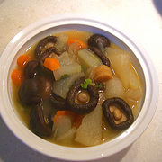 冬瓜、大干贝、胡萝卜、紫苏、干香菇、盐、胡椒粉。