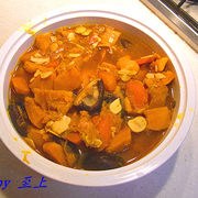 南瓜、干香菇、胡萝卜、蒜片、酱油、十三香、胡椒粉。